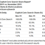 Microsoft가 Google에 이어 미국 온라인 검색 시장에서 Yahoo!를 제치고 처음으로 2위 자리를 기록했다. 비록 근소한 차이지만 Microsoft의 검색 비즈니스가 드디어 Yahoo!로부터 2인자 자리를 넘겨받았다. comScore는 1월 11일 릴리즈된 2011년 12월 미국 검색엔진 랭킹 리포트에서 Microsoft의 검색 점유율이 Yahoo!와 자리를 바꾸어 2위 자리에 올라섰다고 밝혔다. 4위 Ask와 5위 AOL은 변화가 없었다. 1위 Google은 11월에 비해 약 0.5%가 늘었고, Microsoft는 0.1% 증가, Yahoo!는 0.6% 하락세를 기록했다. Microsoft 검색 점유율이 높아진 것보다 Yahoo!의 점유율이 낮아지면서 2위 자리의 주인이 바뀌게 된 것이다...