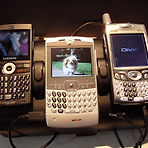 같기도 하지만 다르다. 무슨 말인고 하니, 엄격하게 말해서 코덱(코덱라이브러리)은 같을지라도 모바일 기기에서 재생할 수 있고 없고의 차이가 있다. 그러나 이런 설명없이 대부분 요즘 나오는 Low Power 멀티미디어 기기(Handheld 기기라고 명명하고 있다, Mini PMP, MP4 Player 등등)들은 앞다투어 DivX를 지원한다고 밝히고 있다. 마침 오늘 세계일보와 서명덕 기자의 블로그에 올라온 기사이다. 세계일보 : 삼성, 세계최초 디빅(DivX) 인증 휴대폰 위 사진은 3GSM 행사 때 DivX 부스에서 직접 찍은 것이다. 보면 알 수 있지만, Palm의 Treo와 삼성 블랙잭에서 DivX로 인코딩 된 영상을 플레이 하고 있다. 일반인들이라면 이렇게 질문하지 않을까? '그럼 PC에 있는 Di..
