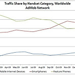 AdMob은 2월 10일자 Mobile Metrics 보고서를 통해 모바일 네트워크에서의 피처폰 트래픽 비중은 줄고 있으며, 상대적으로 스마트폰의 트래픽은 증가하고 있다고 진단했다. AdMob은 미국 현지시각 25일 목요일 자체 조사 시스템을 이용한 모바일 트래픽 조사결과를 공개했다. AdMob은 스마트폰, 피처폰, 모바일 인터넷 단말기(MID)의 세가지 카테고리로 분류하여 작년2월부터 올해 2월까지의 트래픽 분석 자료를 근거로 모바일 트래픽에서 피처폰은 감소추세에 있으며, 스마트폰과 MID에서는 증가하고 있다고 밝혔다. 3개의 카테고리로 구분하여 모바일 네트워크 트래픽의 1년간 변화추이를 한눈에 볼 수 있는 이 자료를 살펴보면, 피처폰은 1년전 58%에서 35%로 점유율이 줄어들었으며, 반면 스마트폰은..